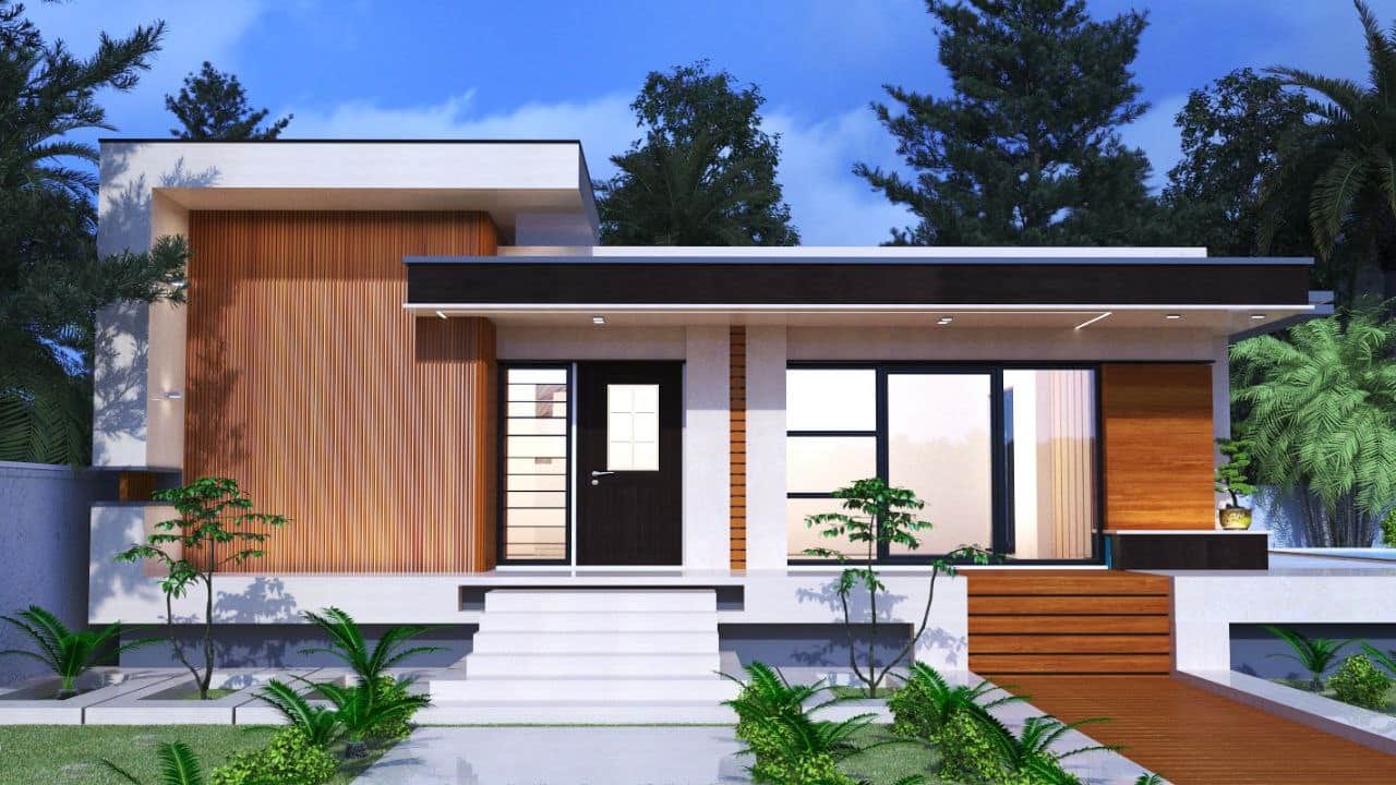 در نما از ترکیب مصالحی مانند چوب، بتن سفید و شیشه استفاده شده که علاوه بر ایجاد کنتراست بصری، حس گرما و صمیمیت را در کنار مدرنیته به نمایش میگذارد. چوب در بخشهای عمودی و افقی نما، عمق و گرمی ایجاد کرده و شیشههای قدی بزرگ، ارتباط مستقیم فضای داخلی با طبیعت اطراف را فراهم کرده است.
